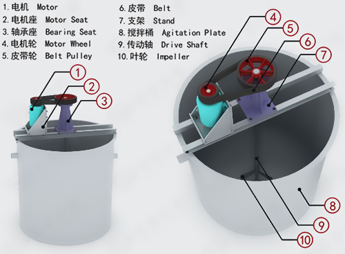 1、葉輪直徑大、轉速快,礦漿和藥物攪拌能力強。